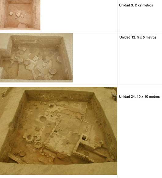 Figura 14. Unidades de excavación de diferentes dimensiones practicadas en SJM y que han determinado la escala de la investigación.