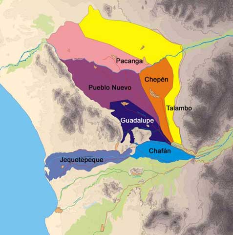 El valle medio y bajo del Jequetepeque es una de las regiones más estudiadas del Perú, tanto en su arqueología, como en su historia y geografía. Durante el período virreinal se estableció allí una serie de poblados sobre las bases de antiguos asentamientos prehispánicos. San Pedro, Pacasmayo, Jequetepeque, Guadalupe y Chepén son mencionados en censos y visitas coloniales, así como por los primeros exploradores y viajeros. Más aún, poblados más pequeños como Pueblo Nuevo, Pacanga y Chérrepe también figuran en los documentos (Cock 1986; Martínez de Compañón [1782] 1978; Ramírez 2002; Figura 2). De esta época destaca el trabajo del padre agustino Antonio de la Calancha, quien vivió en el monasterio de Guadalupe y reportó una serie de aspectos importantes acerca de la naturaleza, historia y tradiciones del valle (Calancha [1638] 1974).