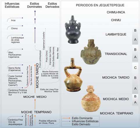 Figura 4. Secuencia cronológica del Valle de Jequetepeque con ejemplares cerámicos representativos de los periodos y fases de la secuencia ocupacional de San José de Moro.